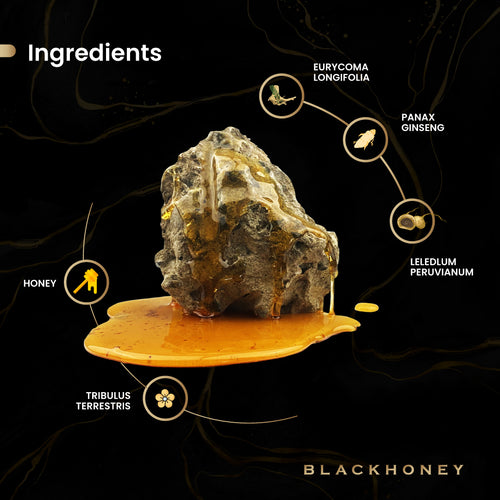 Pure Honey, Tribulus Terrestris, Eurycoma Longifolia, Panax Ginseng, Leledlum Peruvianum.